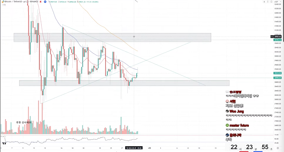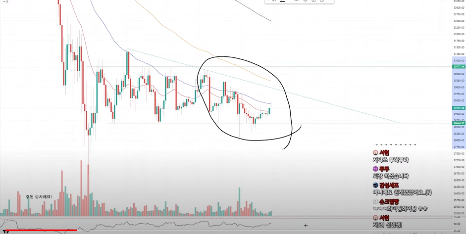 추세선 벗어나지 않았고 지지선을 지켜주기 때문에 숏이 아직은 안들어오지만 기다리는 중.