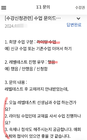 우선 제가 원하는 코스가 있었는데 레벨 3부터 할 수 있는 코스를 우리 아이도 할 수 있겠다 싶어 다행이었어요. 레벨테스트 수업도 좋았고, 결과도 좋고 특히 교재가 제일 마음에 들었는데요. 리딩과 작문이 반반씩 있어서 학습 효과가 좋겠더라고요. 게다가 상담해보니 숙제와 첨삭도 가능하다고 합니다.